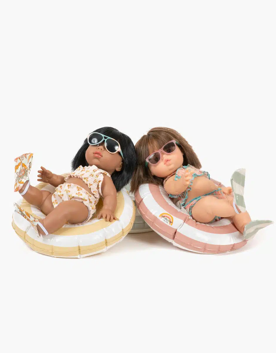Para powlekanych bawełnianych płetw dla lalek i niemowląt Minikane Gordis 34 i 37 cm.