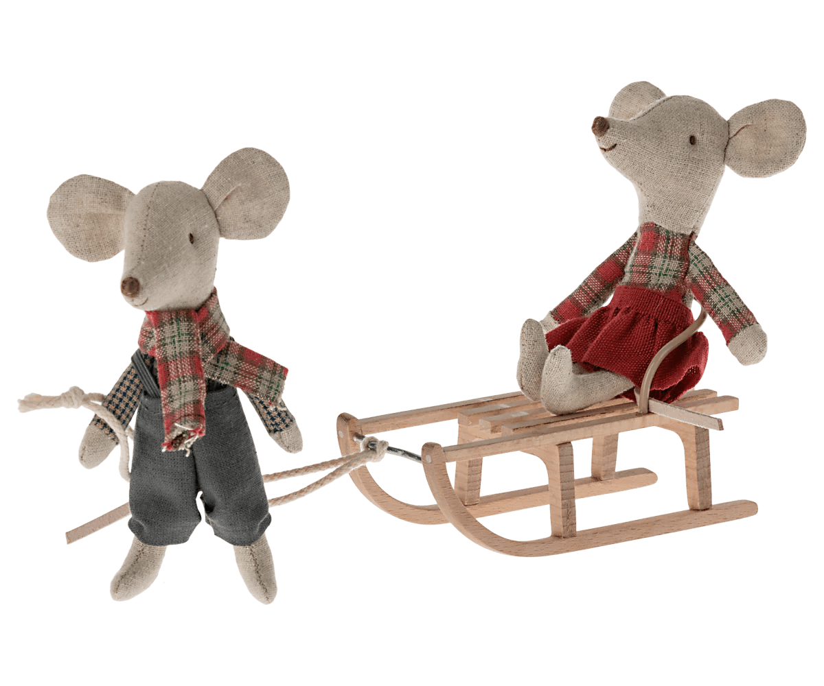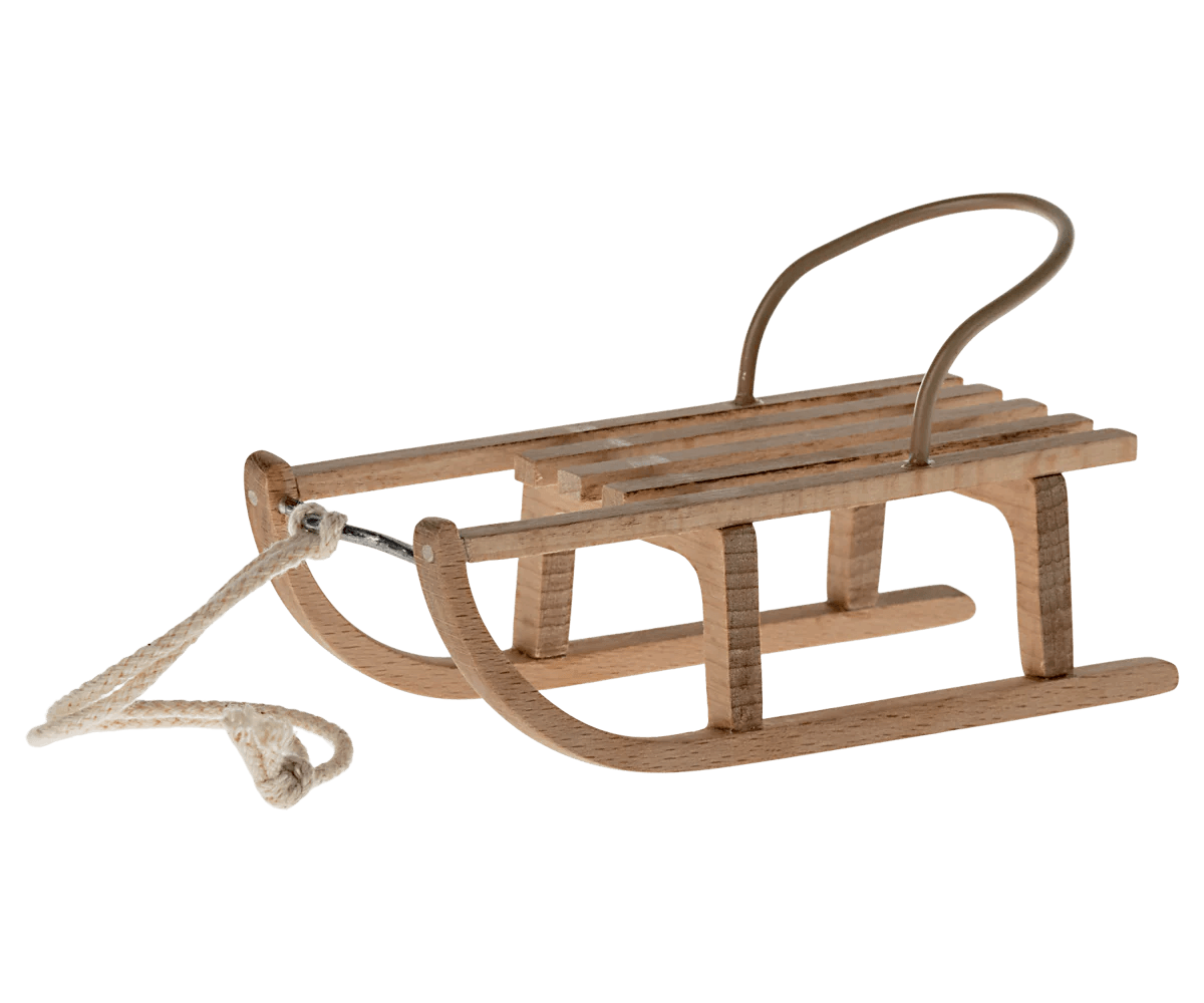 Te drewniane sanki są idealnym dodatkiem na zimę, gdy pada śnieg. Idealnie pasują do mniejszych myszy. Trzymaj sznurek przymocowany, aby łatwo było ciągnąć sanki po śniegu.
