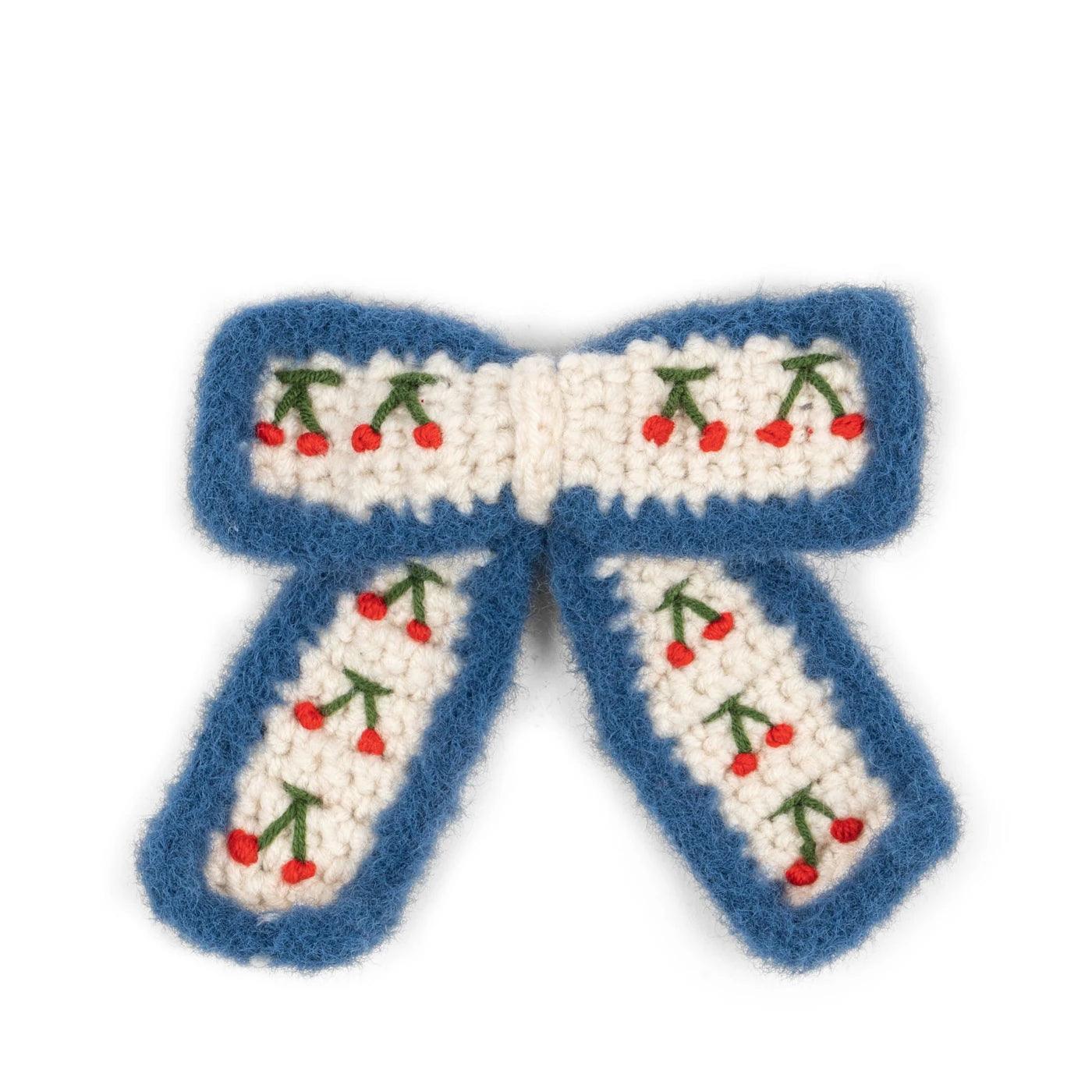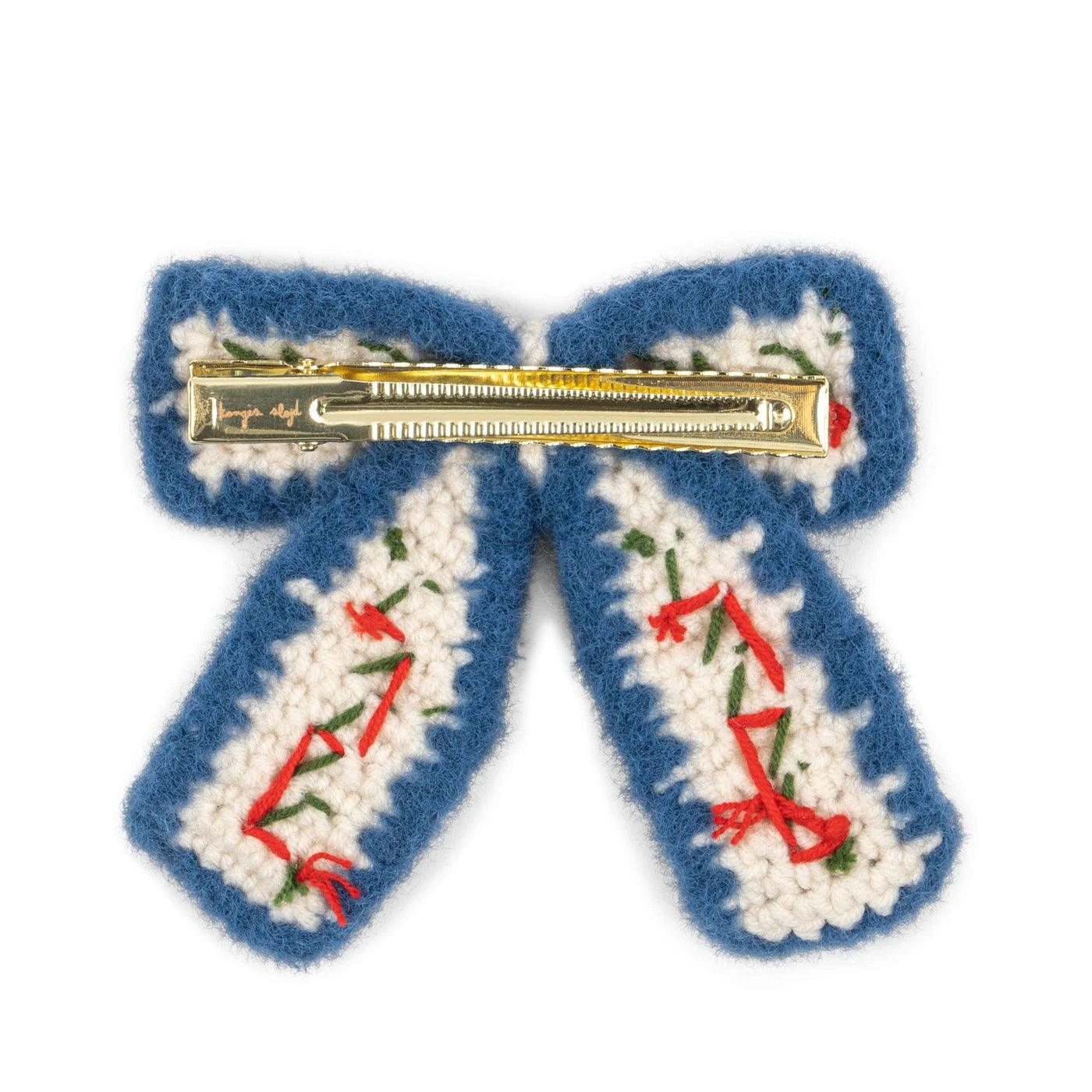 Szydełkowa kokardka wykonana w 100% z akrylu i 100% ze stali