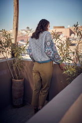 Ta bluza debiutuje w naszej garderobie nomadów i stanowi dopełnienie patchworkowych ubrań, które są tak bliskie naszym sercom. Wykonany z bawełny, jest wyjątkowo miękki i wygodny, a także doda duszy Twojemu codziennemu życiu.