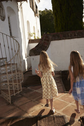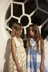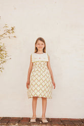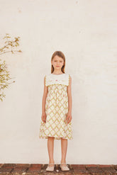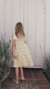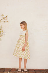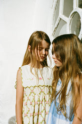 Sukienka Charlotte inspirowana stylem vintage z nostalgicznym nadrukiem róż i kwadratowym kołnierzykiem z charakterystycznym kwiatowym haftem. Wykonana z najdelikatniejszej bawełny. Zapięcie z tyłu na guzik z masy perłowej.