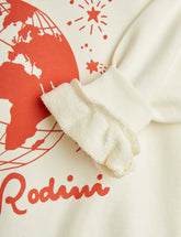 Bluza wykonana w 100% z certyfikowanej przez GOTS bawełny organicznej. Zaprojektowana z obniżonymi ramionami dla luźnego dopasowania. Wykończona ściągaczami i naszym klasycznym nadrukiem Mini Rodini Society.