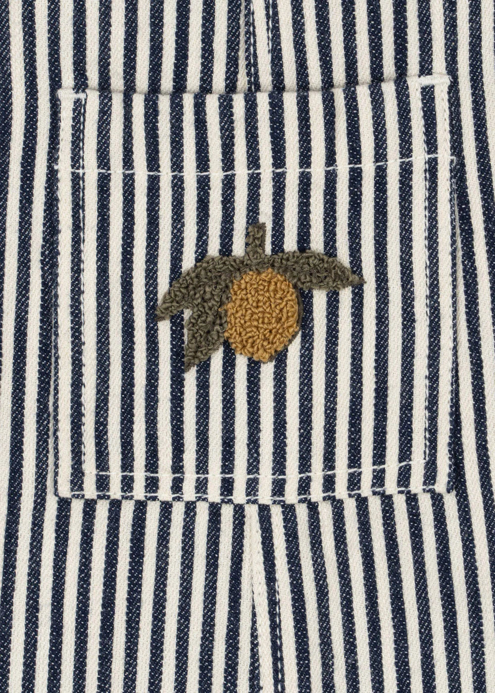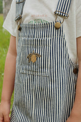 Ogrodniczki z miękkiej bawełny twill. Zaprojektowane z guzikami po bokach dla łatwego zakładania. Materiał: 100% bawełna organiczna. GOTS, Organic, certyfikowany przez CU1094701.