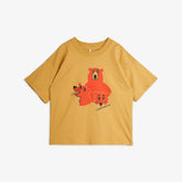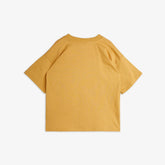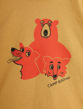 Koszulka z nadrukiem Camp Rodini, wykonana w 100% z certyfikowanej bawełny organicznej GOTS. Luźny krój i kołnierzyk ze ściągaczem.