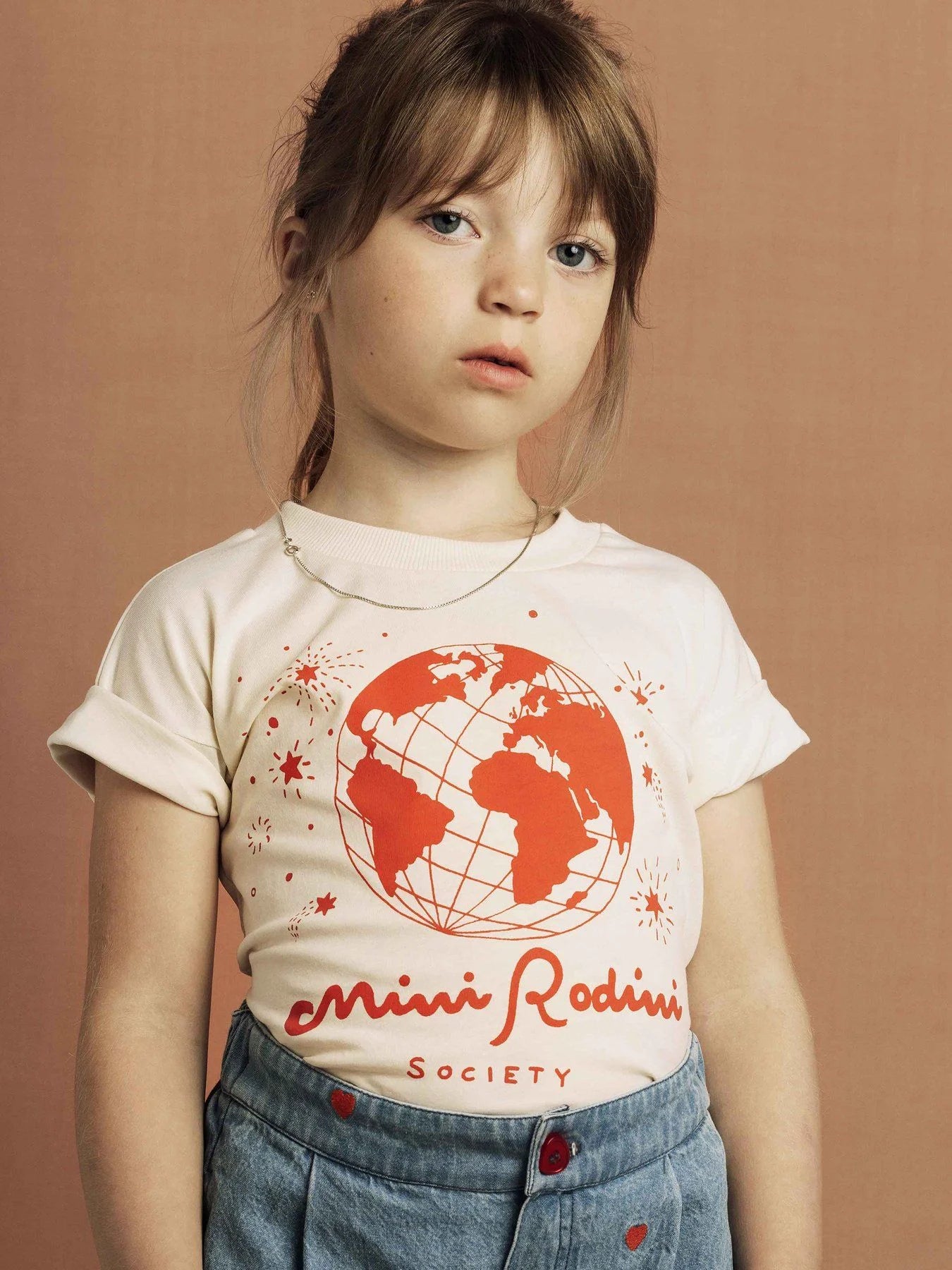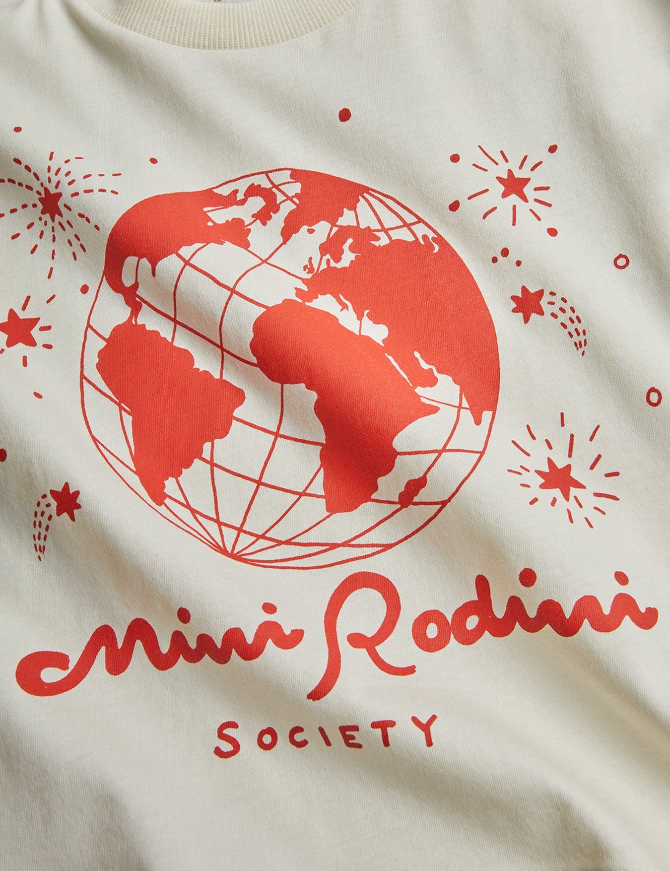 Koszulka wykonana w 100% z certyfikowanej bawełny organicznej GOTS, z pojedynczym nadrukiem z grafiką Mini Rodini Society na piersi. Zaprojektowana z regularnym krojem i ściągaczem przy dekolcie dla miękkiego dotyku.