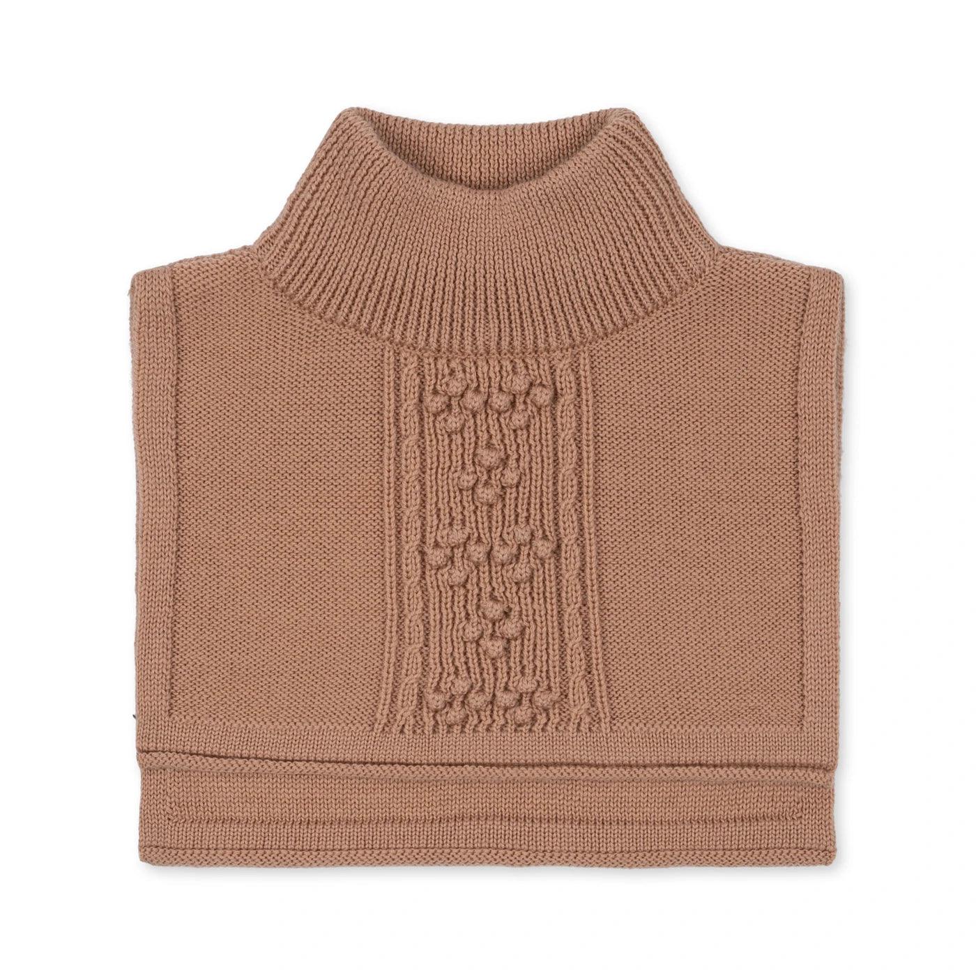 Ocieplacz na szyję z miękkiej wełny merynosów. Zaprojektowany z wygodnym wysokim kołnierzem w elastycznej strukturze dzianiny ściągaczowej. Wykonany w 100% z wełny merynosów.