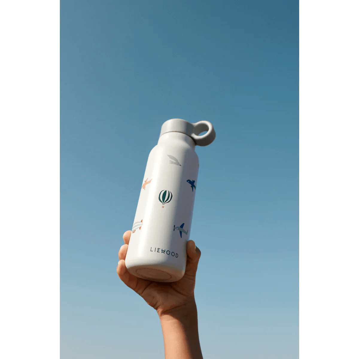Najwyższej jakości stalowa butelka na wodę, wykonana w 80% z recyklingowanej stali nierdzewnej, została zaprojektowana tak, aby była łatwa do trzymania przez małe rączki. Jest szczelna i ma wbudowaną wyskakującą pokrywkę ze słomką, a także uchwyt pętlowy do wygodnego przenoszenia w podróży.
