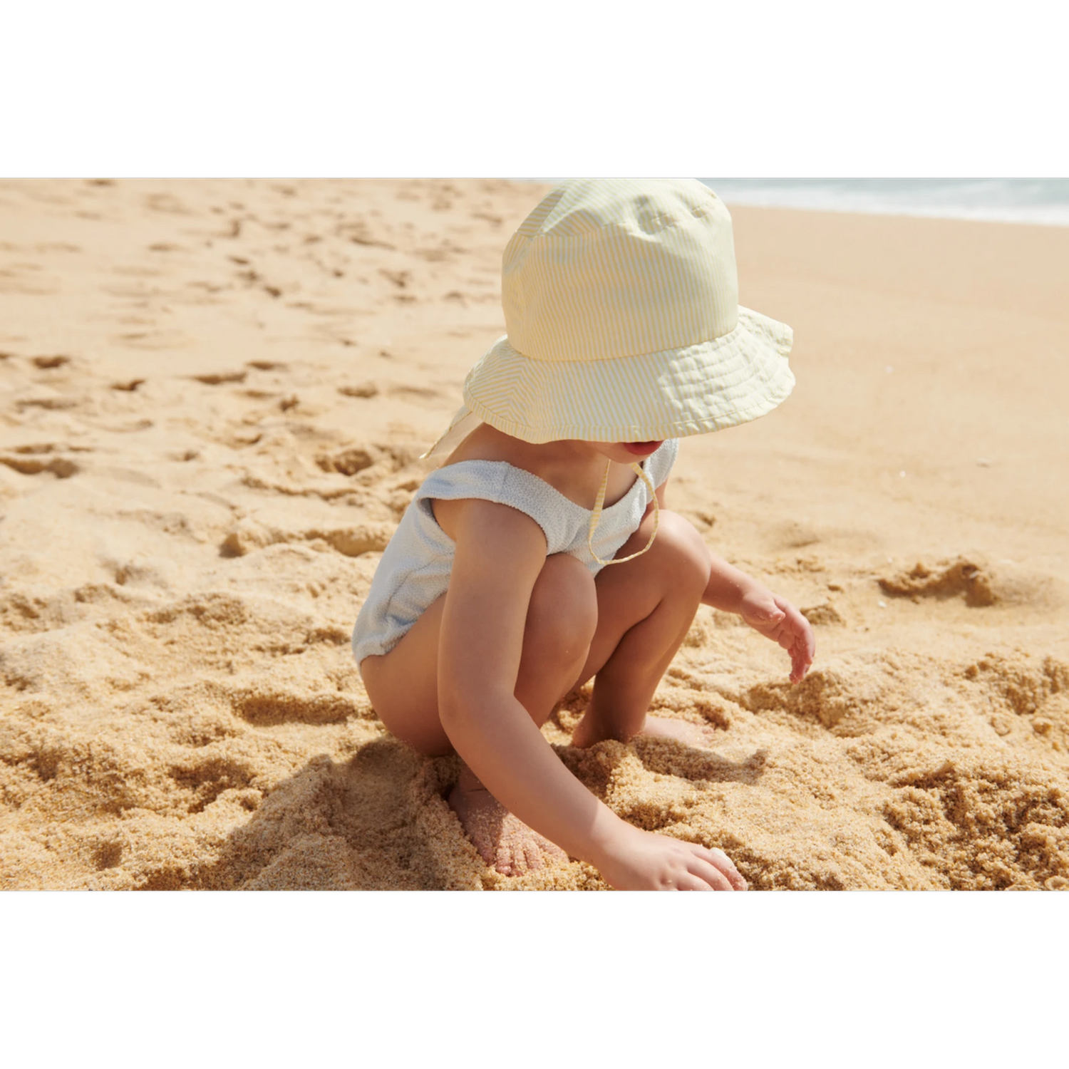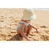 Urocza i praktyczna czapka dla mniejszych dzieci z długą klapką na szyję, zapewniającą najlepszą ochronę przed słońcem podczas kąpieli w wodzie. Kapelusz Damona jest wykonany z poliestru z recyklingu, dzięki czemu jest idealnym wyborem na dni spędzone na plaży lub przy basenie.