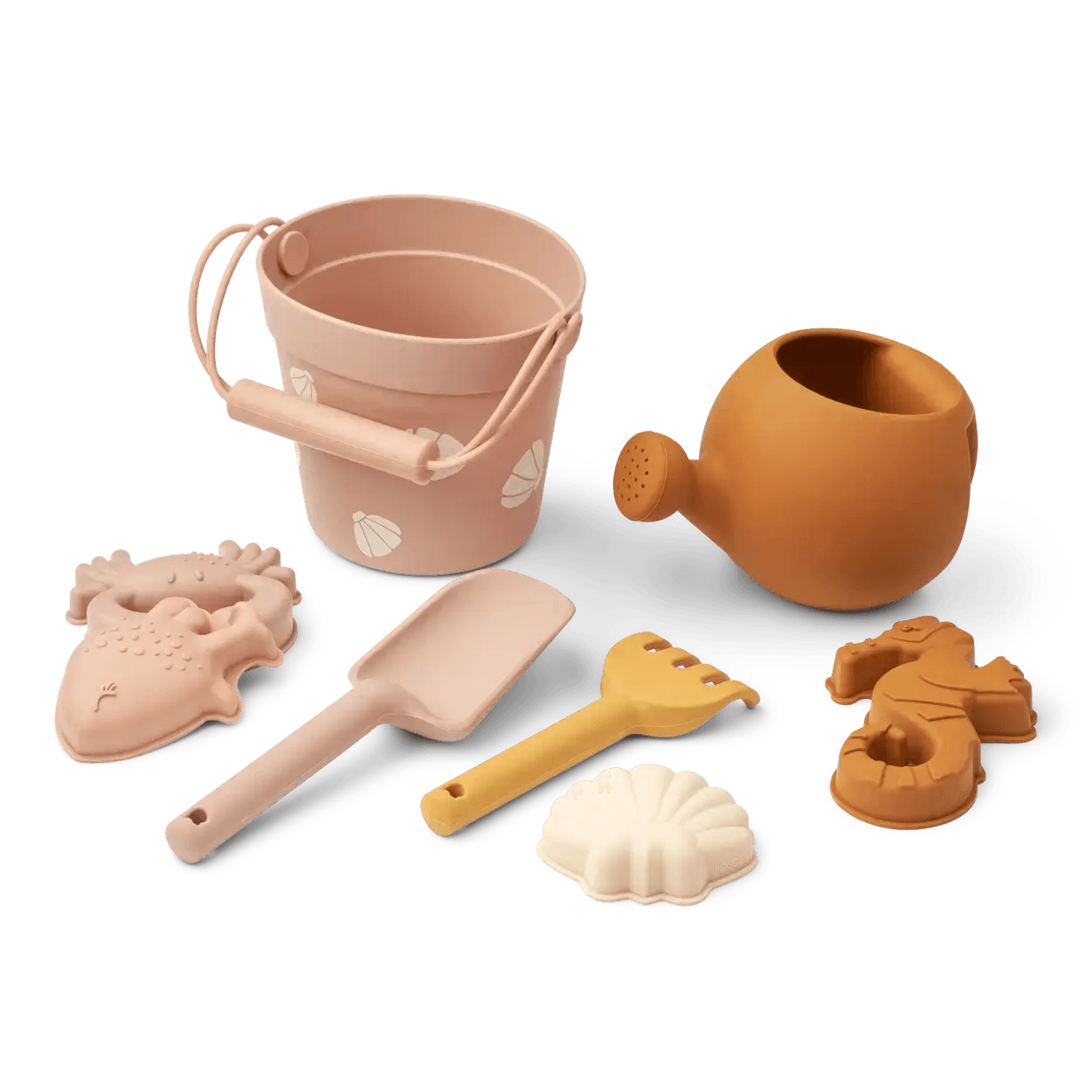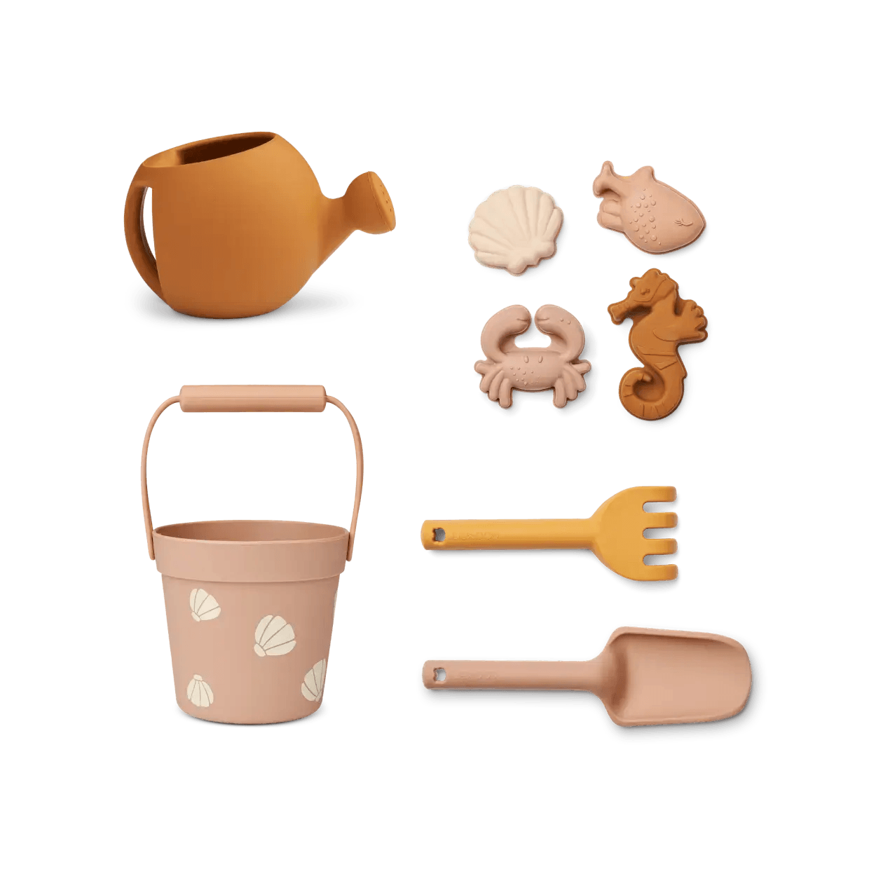 Zestaw Florence gwarantuje wielogodzinną zabawę w piasku i wodzie. Miękkie silikonowe elementy pomagają wzmocnić zdolności motoryczne Twojego malucha w ogrodzie, na plaży lub na basenie i idealnie nadają się do zabrania na wakacje.