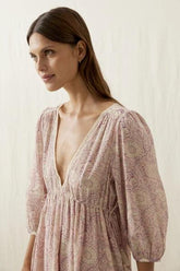 Zdecydowanie boho, ta długa, powiewna sukienka uwiedzie Cię swoją śliczną objętością. Pełna poezji, jej pastelowe kolory ukołyszą Twoją duszę do snu!