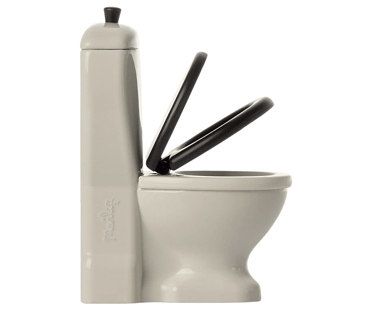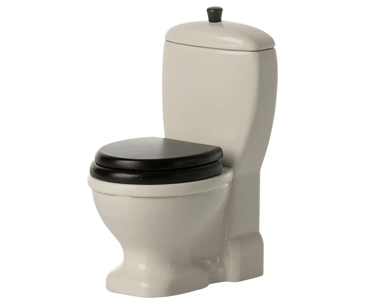 Do asortymentu łazienkowego dodano toaletę. Jest pięknie wykonana w kolorze złamanej bieli z czarnym siedziskiem. Siedzisko można otwierać i zamykać, a funkcja pociągnięcia w uchwycie sprawia, że jest bardzo realistyczna i zabawna. Ma idealny rozmiar dla rodziny myszy.