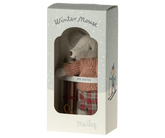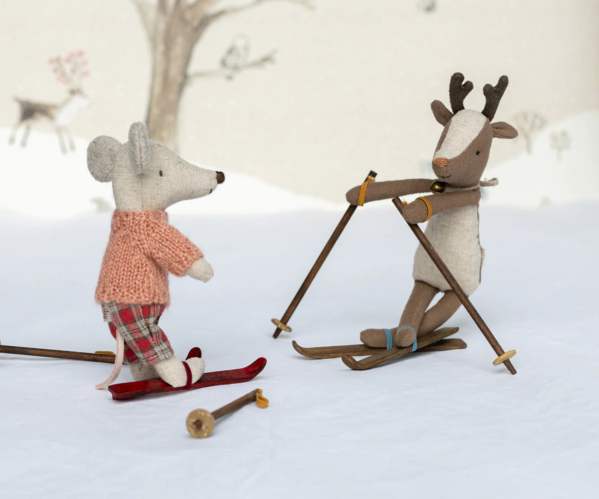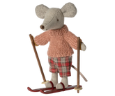 Mysz gotowa na wiele godzin zabawy na stoku podczas mroźnej zimy. Każdy zestaw zawiera ciepło ubraną mysz z parą nart i kijkami. Zabawnym szczegółem są uszy, które wyglądają, jakby mysz nosiła ocieplacze na uszy.