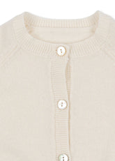 Wyjątkowo miękki i wygodny wełniany kardigan z guzikami z masy perłowej z przodu, ozdobnymi ściągaczami i raglanowymi rękawami. Idealna warstwa wierzchnia, która zapewni Twojemu dziecku ciepło i wygodę przez cały czas.