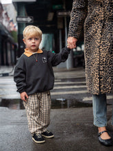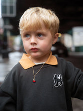 Bluza z kontrastowym kołnierzem, wykonana w 100% z bawełny organicznej z certyfikatem GOTS. Zaprojektowana z obniżonymi ramionami dla swobodnego dopasowania i wykończona naszywką z motywem pantery.
