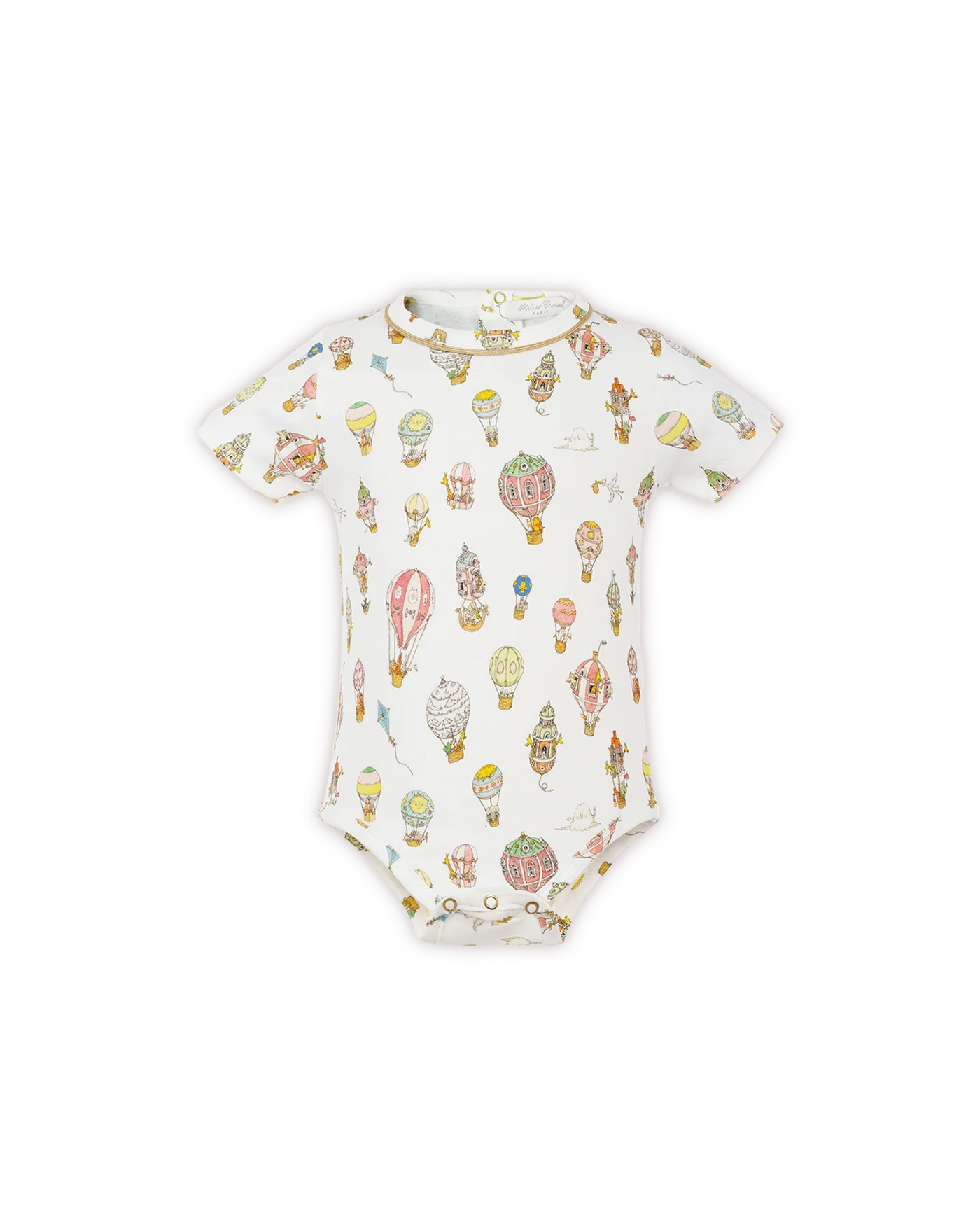 Atelier Choux Onesie – Hot Air Balloons to elegancki niezbędnik dla nowoczesnego dziecka. Wykonany z bawełny, zapewnia wyjątkową miękkość, przewiewność i delikatną elastyczność — idealny dla delikatnej skóry i codziennego noszenia.