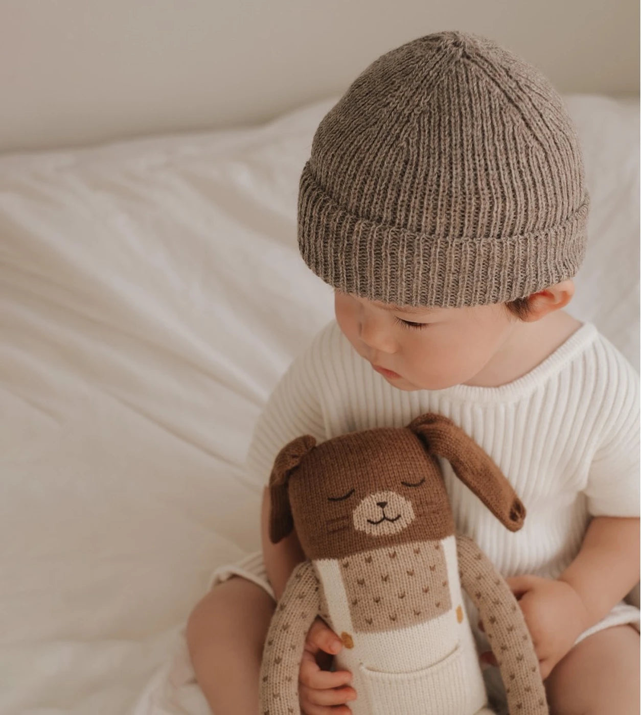 Nasza supermiękka czapka z dzianiny prążkowanej to niezbędny i ponadczasowy dodatek do garderoby każdego niemowlęcia i małego dziecka.