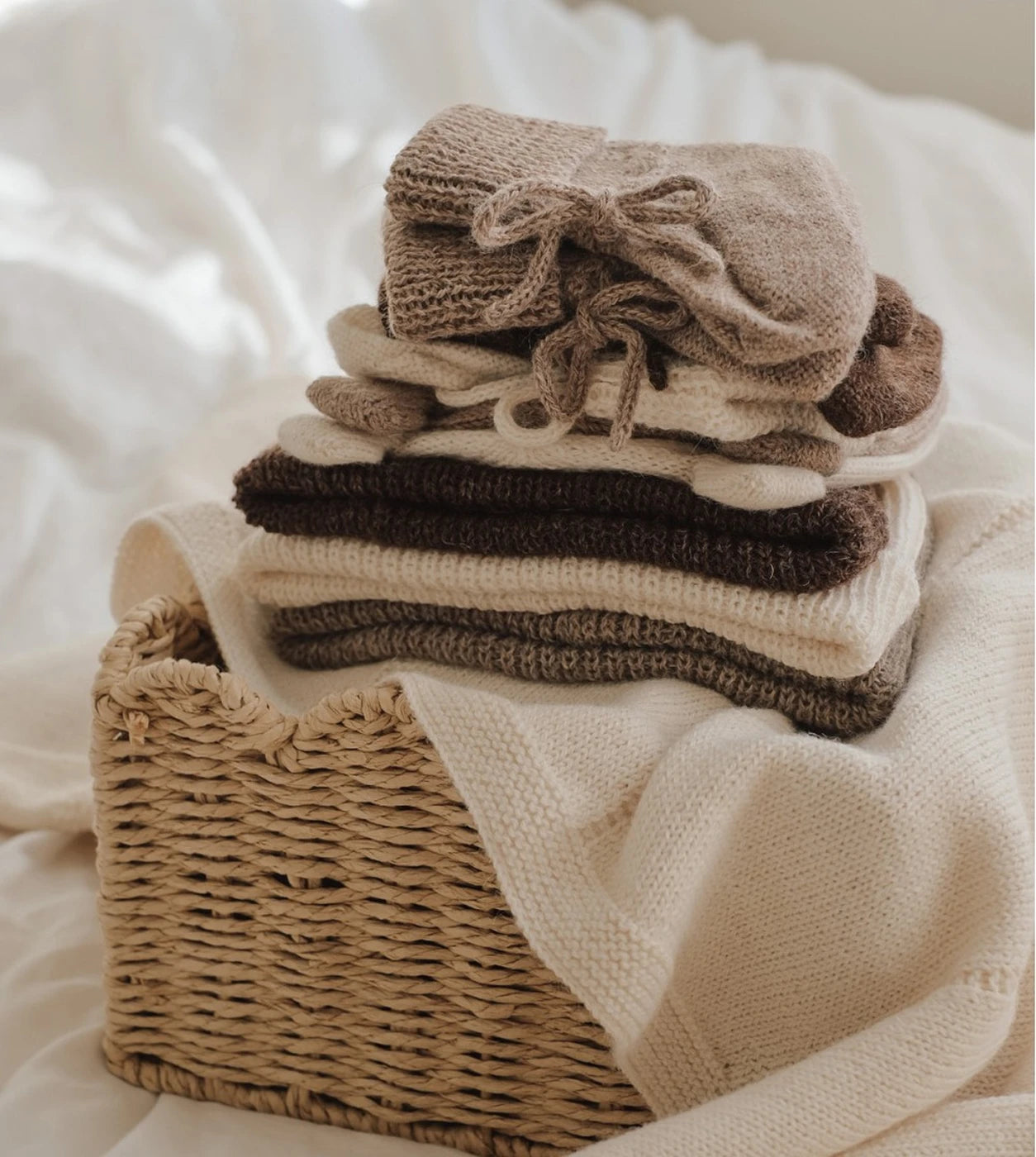 Pranie: Ponieważ wełna alpaki naturalnie odpycha kurz i zapachy, nie ma potrzeby częstego prania produktu. Aby zachować jego świeżość, wystarczy wywietrzyć go przez kilka godzin na świeżym powietrzu. Jeśli konieczne jest pranie, zalecamy pranie ręczne w zimnej wodzie z dodatkiem delikatnego detergentu (np. szamponu dla dzieci) lub specjalnego detergentu do wełny. Przed płukaniem należy pozostawić produkt na kilka minut w wodzie. Aby wysuszyć, delikatnie owiń produkt ręcznikiem, aby usunąć nadmiar wody. Połóż produkt na płasko na suchym ręczniku, z dala od bezpośredniego światła słonecznego, aby zachować jego kształt. Kształt nadany przed suszeniem pozostanie niezmieniony po całkowitym wyschnięciu.