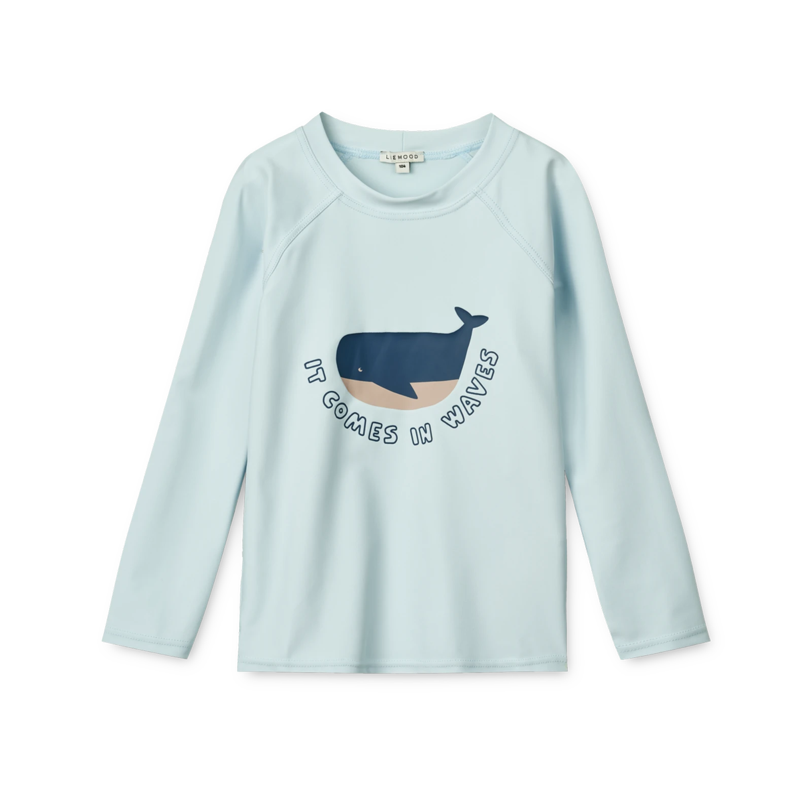 Szybkoschnący i oddychający materiał sprawia, że ​​koszulka do pływania Noah jest faworytem na plażę lub basen. Posiada ochronę UV40+ i zabawny nadruk, który dopełnia styl. Uzupełnij wygląd spodniami do pływania LIEWOOD i kapeluszem przeciwsłonecznym, aby uzyskać maksymalną ochronę.