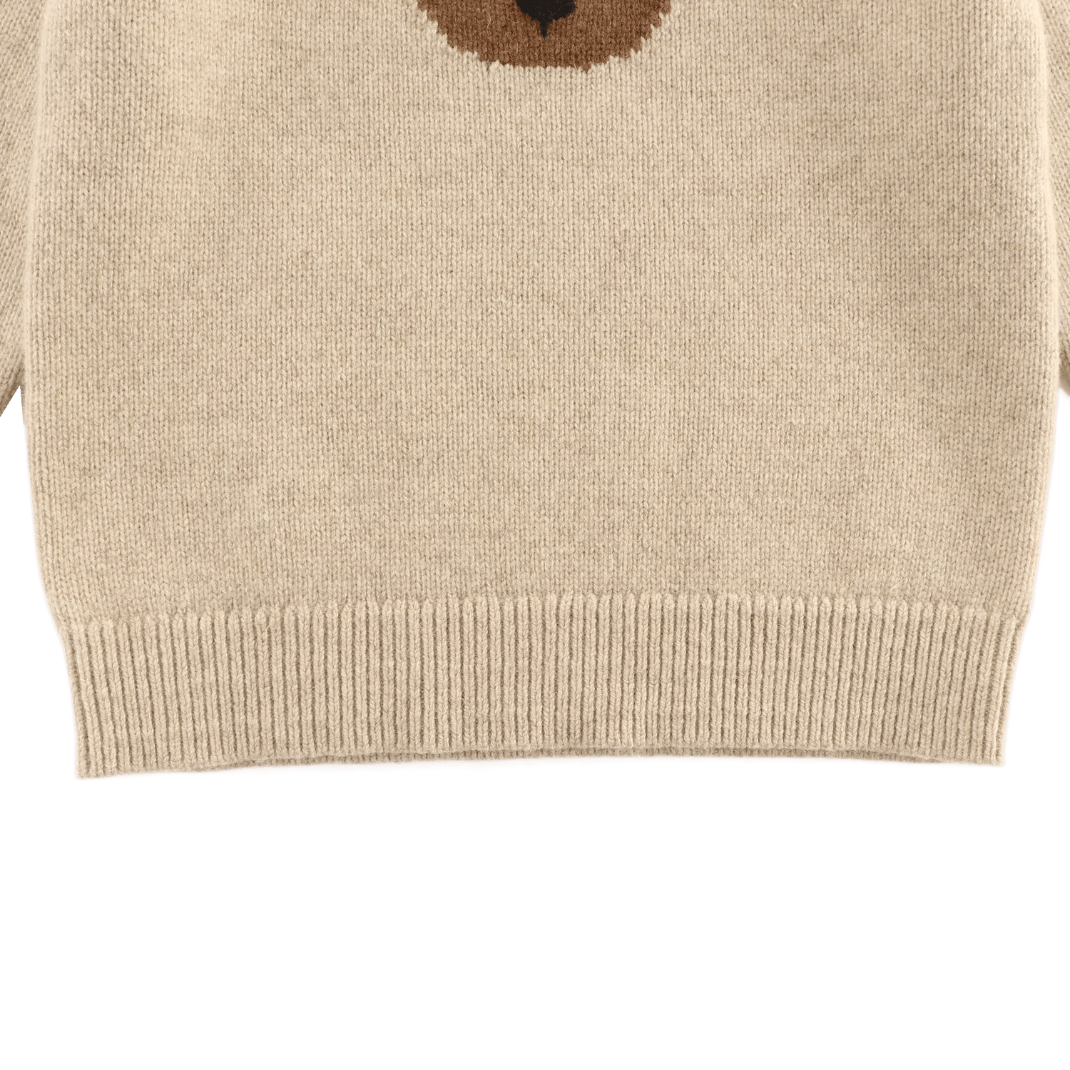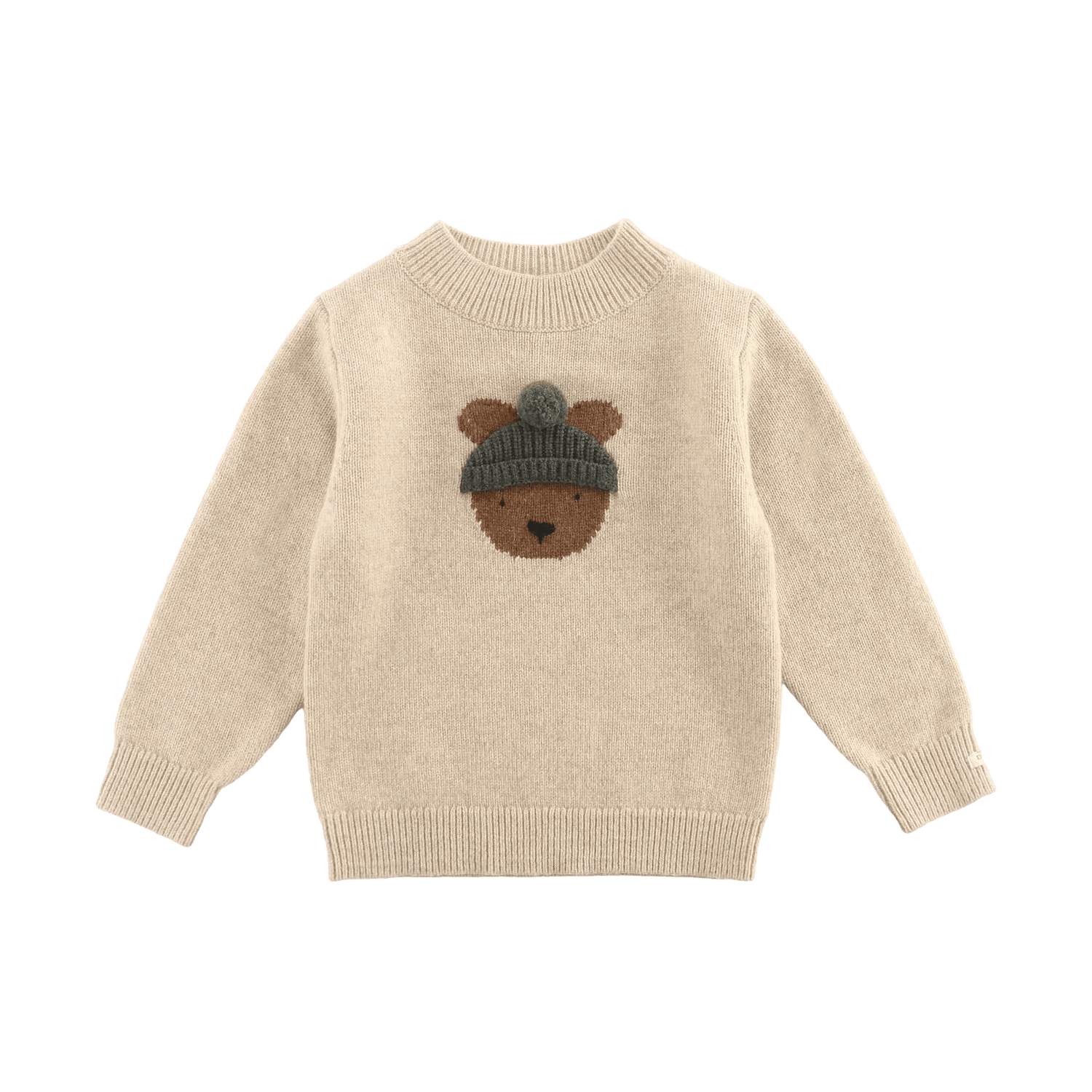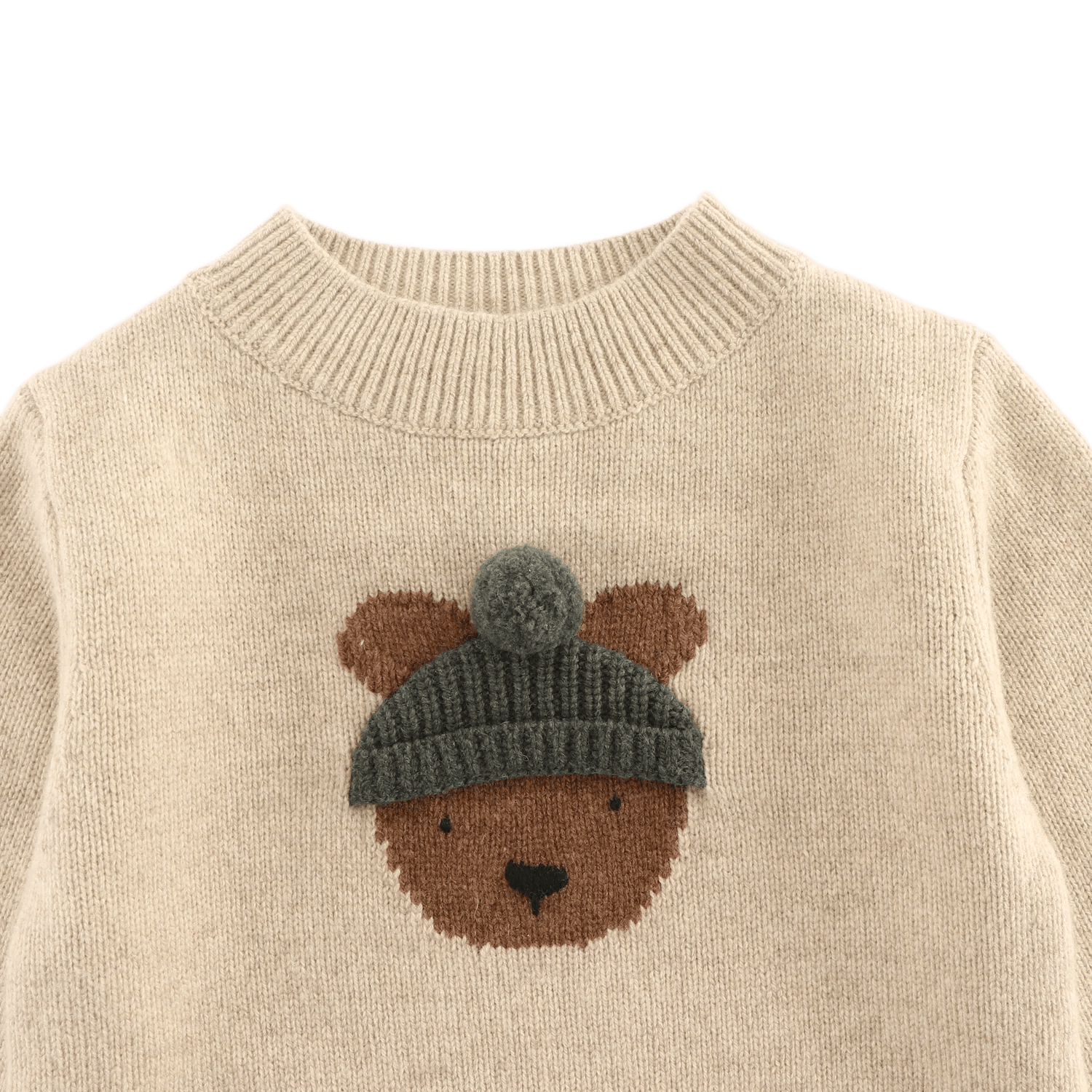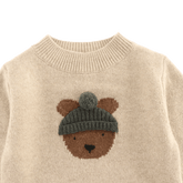 Sweter Denn to zimowy niezbędnik. Łatwy do założenia, z przodu ozdobiony zabawnym haftowanym misiem i uroczym puszystym pomponem, Twój maluch nie będzie chciał go zdejmować.