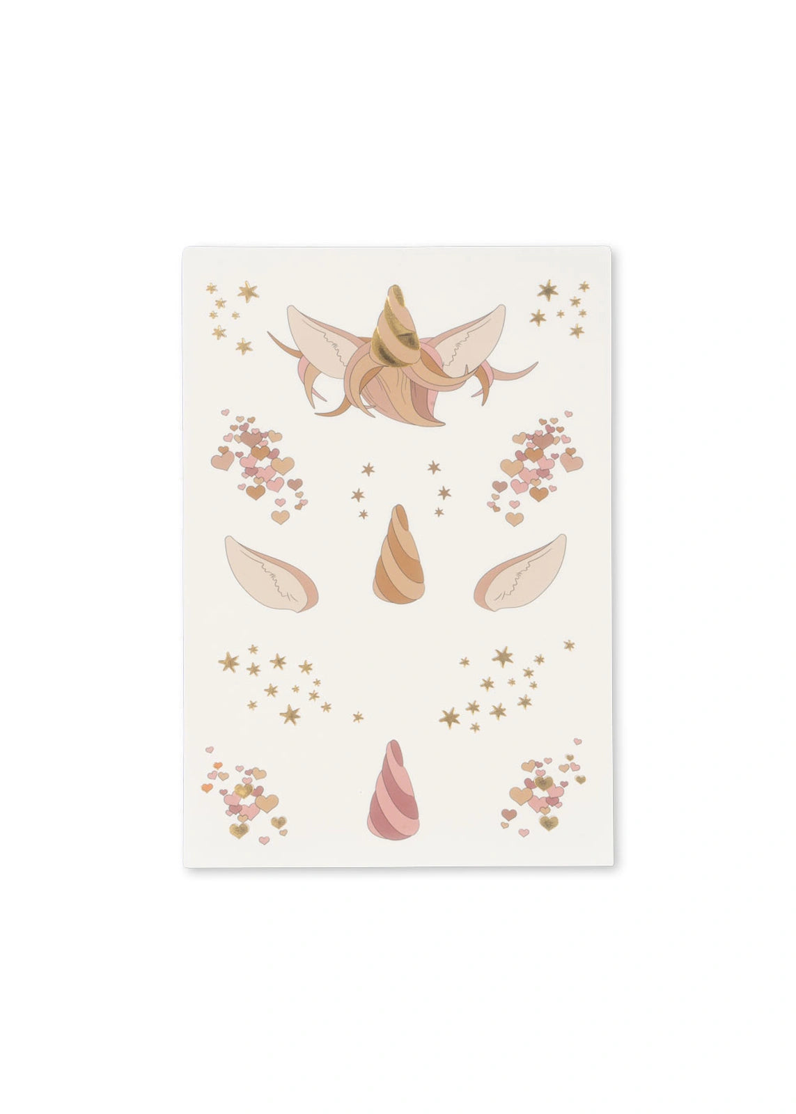 Zestaw tatuaży i dżetów od Konges Sloejd. Do zabawy kreatywnej, przeznaczone do ozdabiania ciała i twarzy. Można wykorzystać również do ozdabiania przedmiotów, prac plastycznych, czy wielkanocnych pisanek.