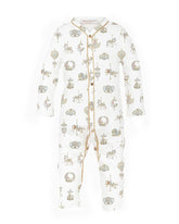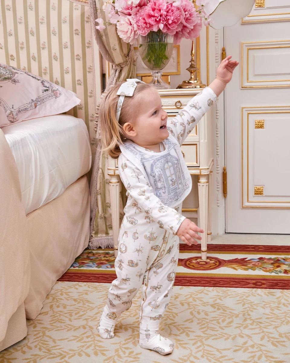 Charakterystyczny dla Atelier Choux, neutralny pod względem płci nadruk — inspirowany czarującymi karuzelami Francji — zdobi te luksusowe bawełniane śpioszki ze złotymi ćwiekami Atelier Choux i złotymi lamówkami pochodzącymi z Japonii. Skład: 100% bawełna Pielęgnacja: Prać w pralce w delikatnym cyklu z białymi rzeczami lub ręcznie. Suszyć na powietrzu lub w suszarce bębnowej w niskiej lub delikatnej temperaturze.