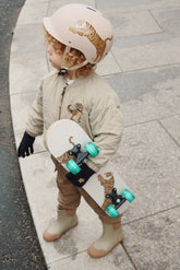 Bezpieczeństwo przede wszystkim, ale zawsze w dobrym stylu dzięki kaskowi rowerowemu Konges Sløjd. Kask posiada praktyczną regulację rozmiaru z łatwym uchwytem, wizjer chroniący przed słońcem. Zaprojektowane z wyjmowaną wyściółką wewnątrz, otworami wentylacyjnymi i klasyczną klamrą.