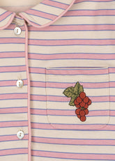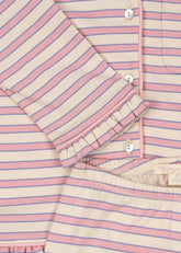 Zestaw zawiera klasyczną koszulę piżamową i miękkie spodnie z falbanami.